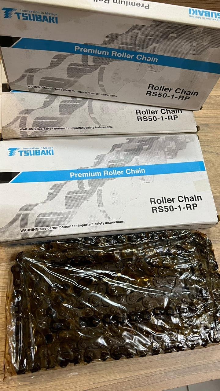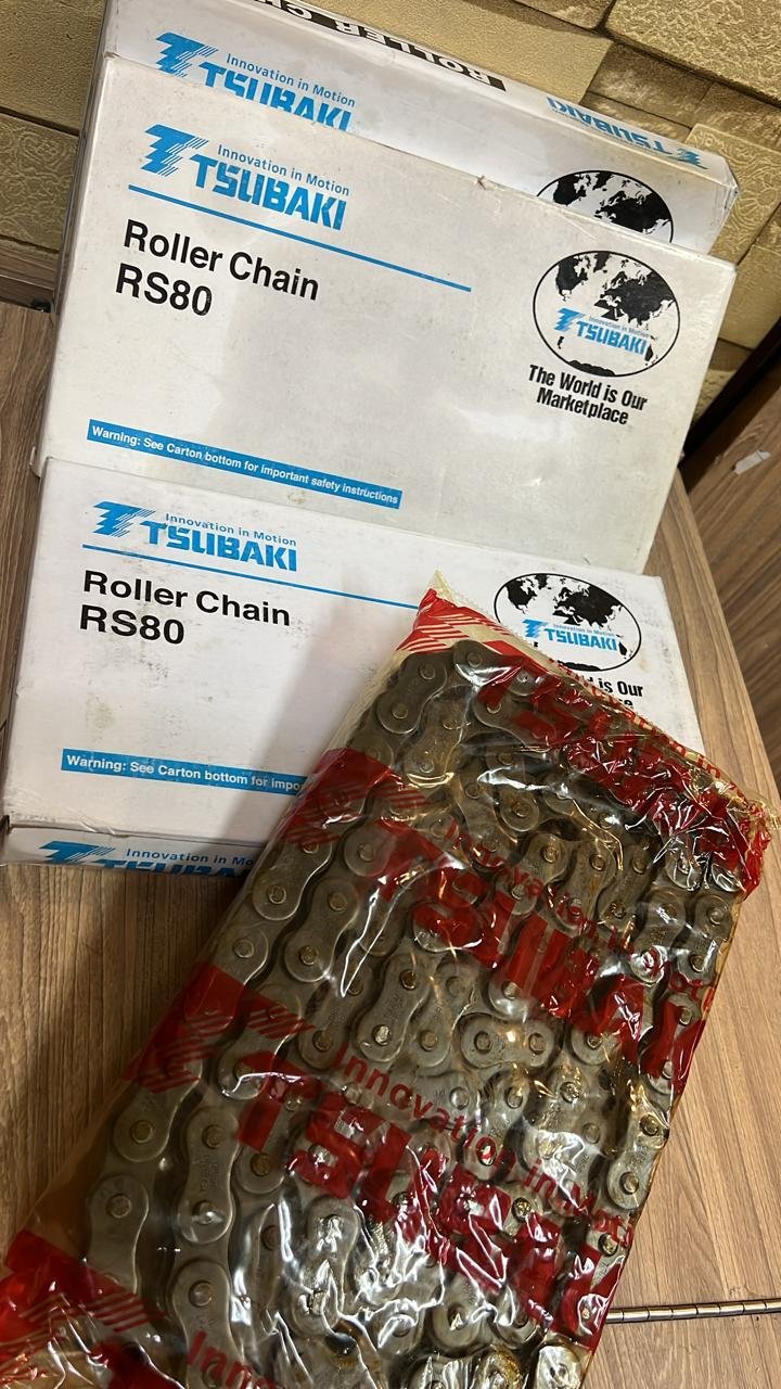Roller chain adalah jenis rantai yang digunakan dalam berbagai aplikasi industri untuk mentransmisikan tenaga dari satu bagian mesin ke bagian lainnya dengan cara melewatkan daya dari gigi roda atau sprocket ke roller-chain. Roller chain merek Tsubaki dikenal karena kualitas dan kehandalannya yang tinggi, serta memiliki berbagai varian untuk berbagai keperluan industri seperti otomotif, pertambangan, manufaktur, dan lainnya. Mereka sering digunakan di mesin konveyor, mesin industri, serta kendaraan berat. Keunggulan roller chain Tsubaki meliputi kekuatan tinggi, tahan lama, dan dapat diandalkan dalam kondisi kerja yang berat.